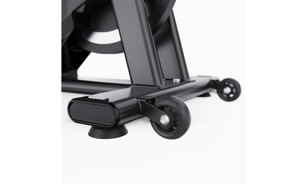Тренажер отличается компактными размерами: 117 х 53 х 118 см, и рассчитан на максимальный вес пользователя до 150 кг. Удобство в использовании обеспечивают транспортировочные ролики, компенсаторы неровности пола и подставка под планшет.
